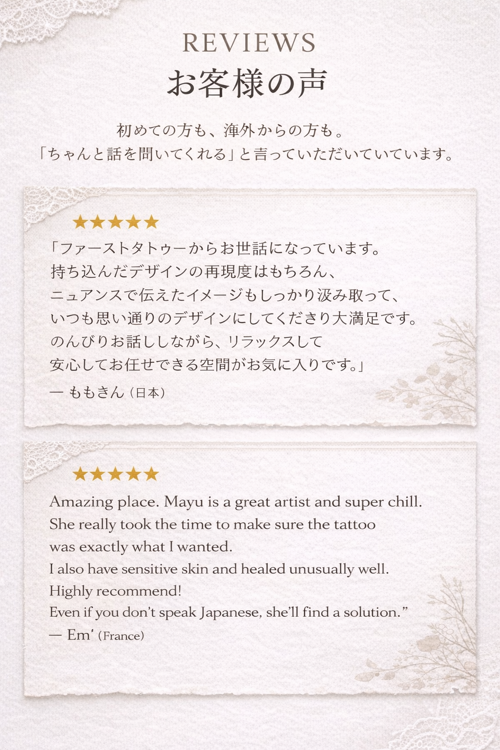 | 店名 | tokyo rose tattoo studio / From Beyond chinita トーキョー・ローズ・タトゥー・スタジオ / フロム・ビヨンド・チニタ |